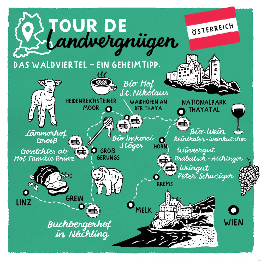 Die Tour de Landvergnügen führt uns durch eine der ursprünglichsten Gegenden Österreichs, fernab vom Massentourismus, aber voller spannender Entdeckungen. Malerische Altstädte, beeindruckende Naturparks und herzliche Gastgeber sorgen für unvergessliche Erlebnisse. Wer hier unterwegs ist, wird schnell feststellen, dass im Waldviertel die Uhren ein bisschen langsamer ticken.