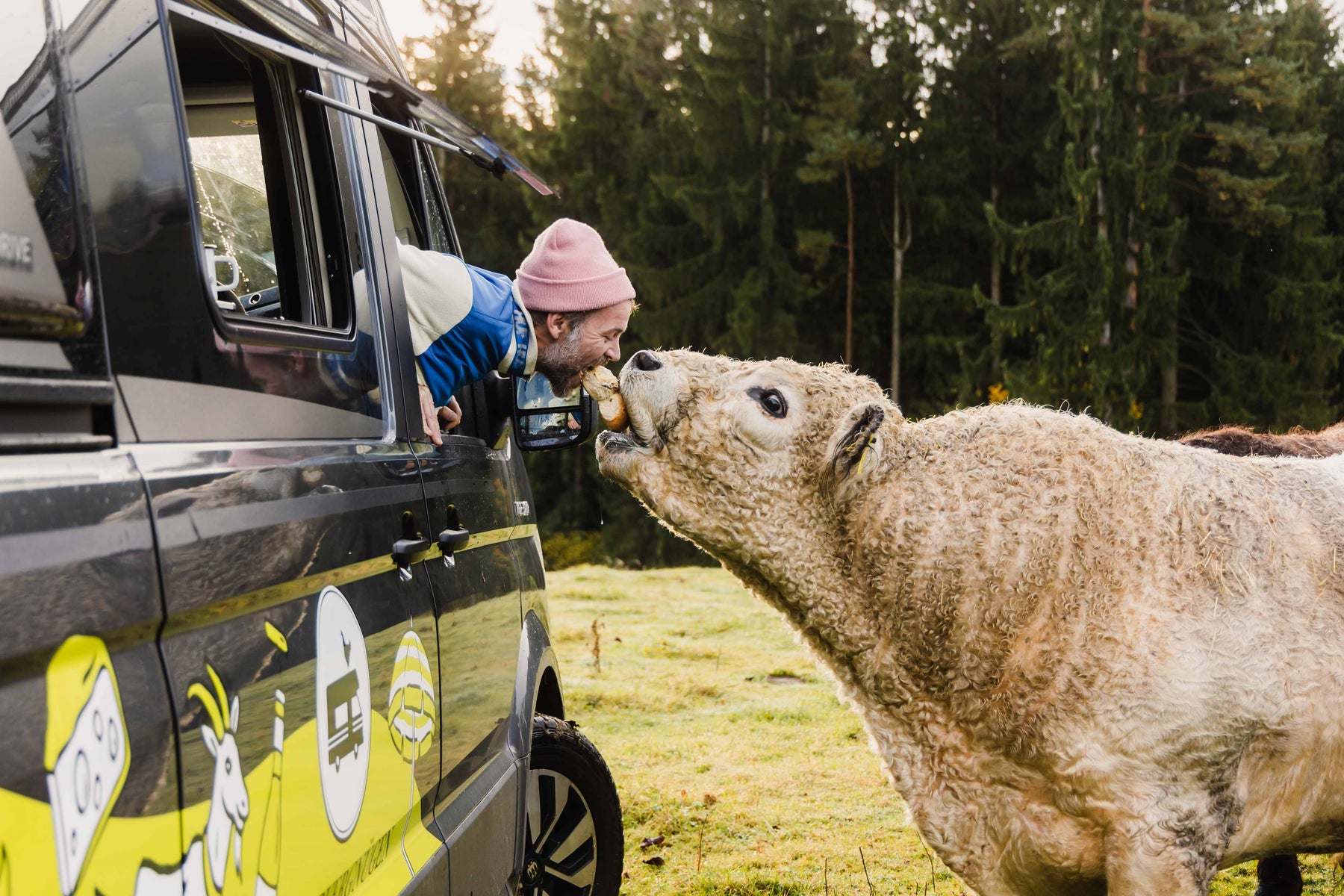 mit Reisemobil, Campingbus, Wohnwagen und Dachzelt. Sei willkommen bei Braumeistern, Imkern, Käsern und Winzern und übernachte direkt neben Alpakas, Wasserbüffeln, Schottischen Hochland-Rindern, Thüringer Waldziegen oder Lachsforellen.